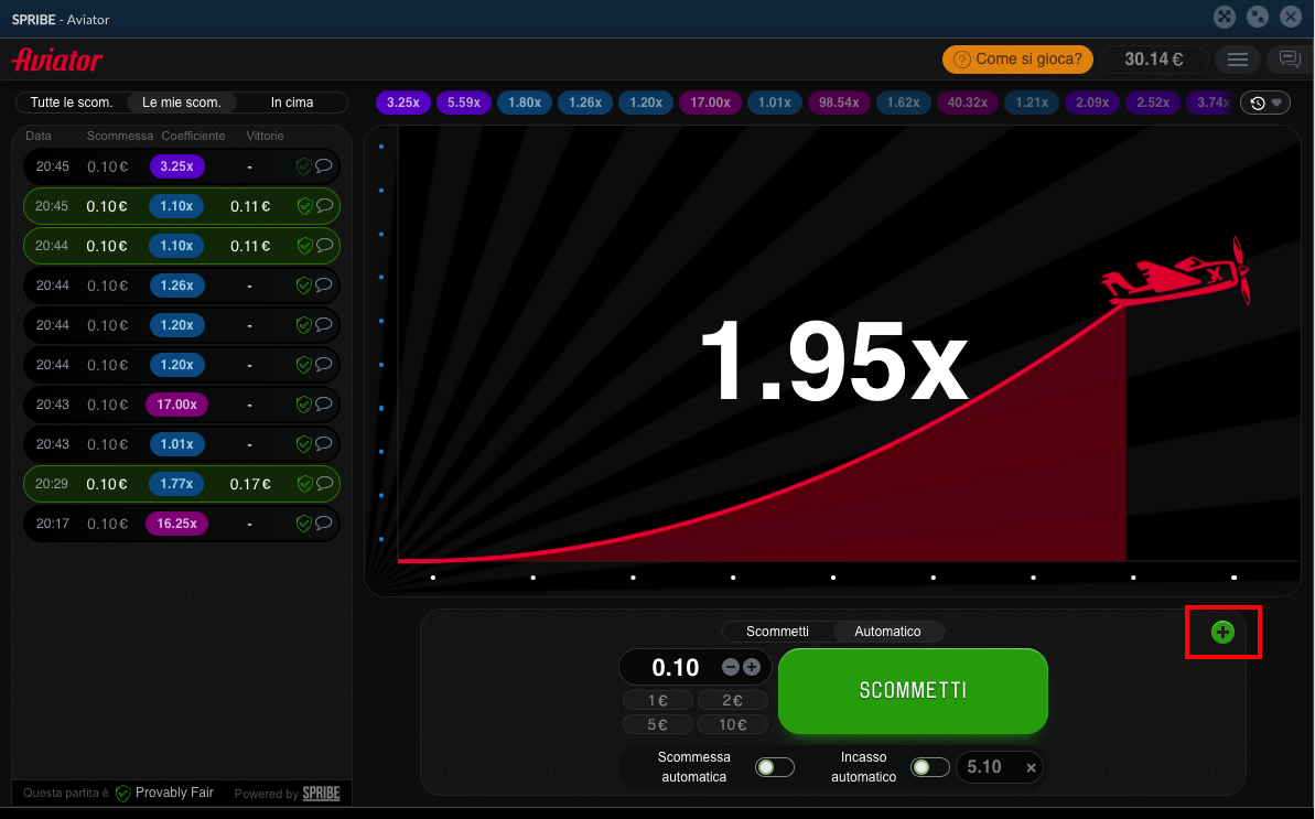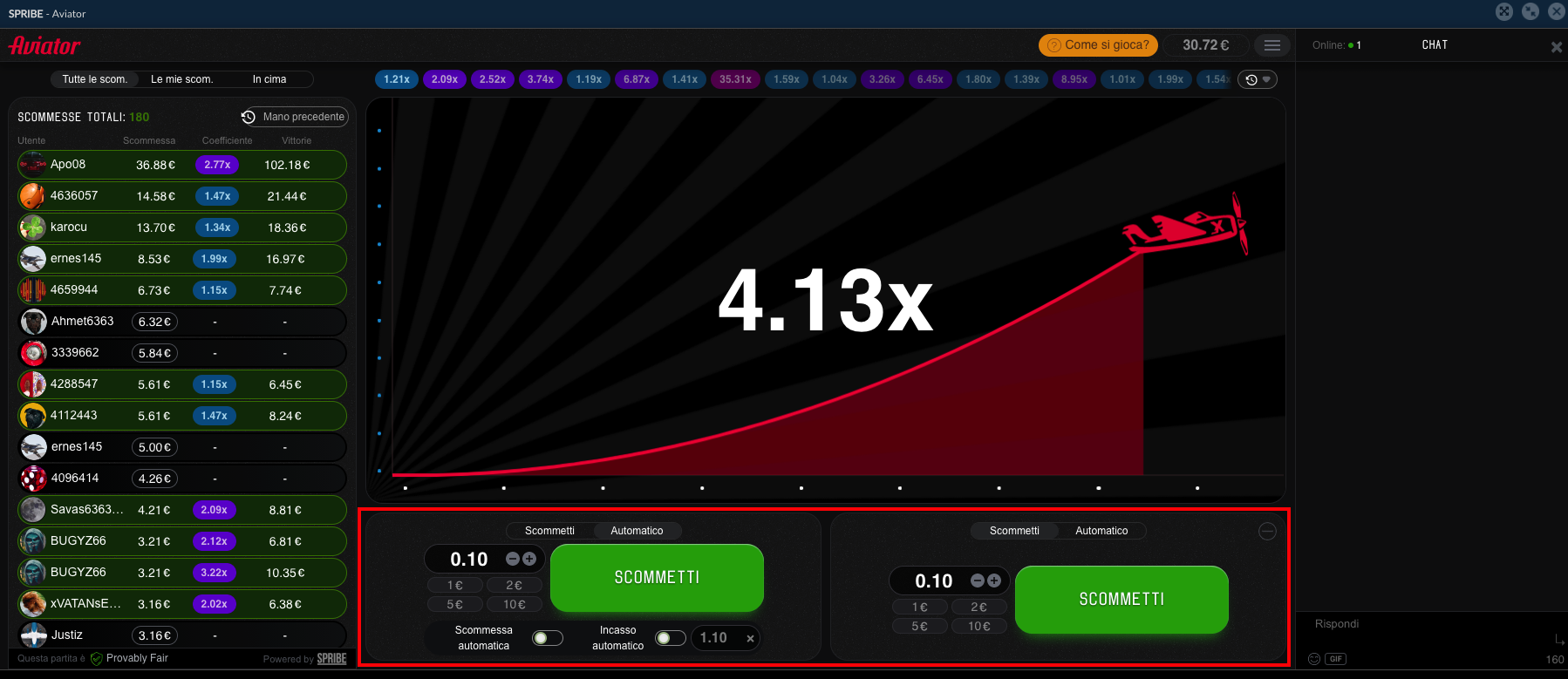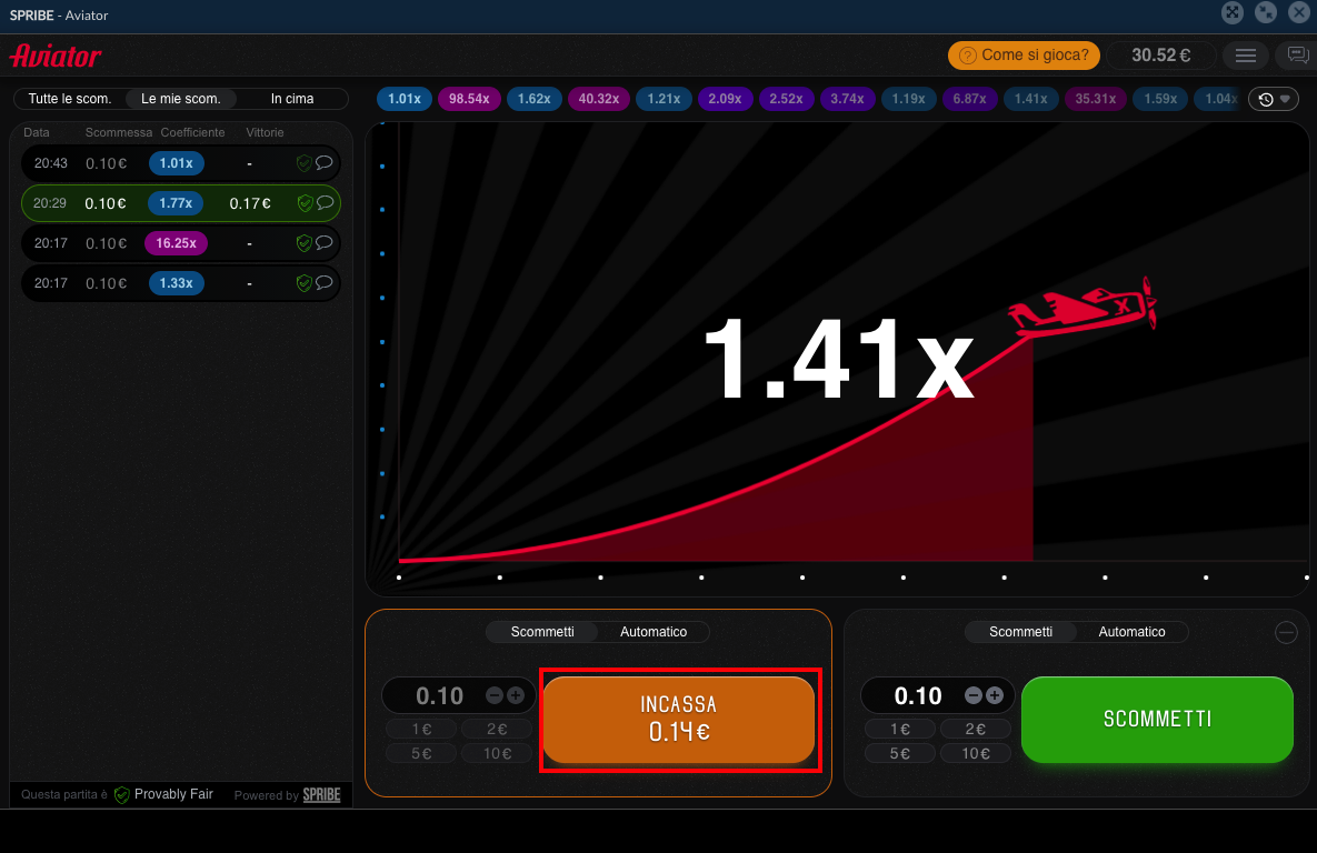 Luego de realizar la apuesta, el usuario deberá esperar a que el símbolo del avión alcance altura. El usuario debe retirar el dinero antes de que el símbolo del juego alcance la altura y desaparezca de la pantalla del juego. En caso de que el símbolo desaparezca antes de presionar el botón de retiro de efectivo, el jugador pierde el monto de la apuesta. Cuando se utiliza la función de cobro automático, el dinero se cobra cuando el índice excede la cantidad seleccionada en 0,01. Ejemplo: si elige el índice 2.0X, automáticamente retirará / apostará a 2.01X.